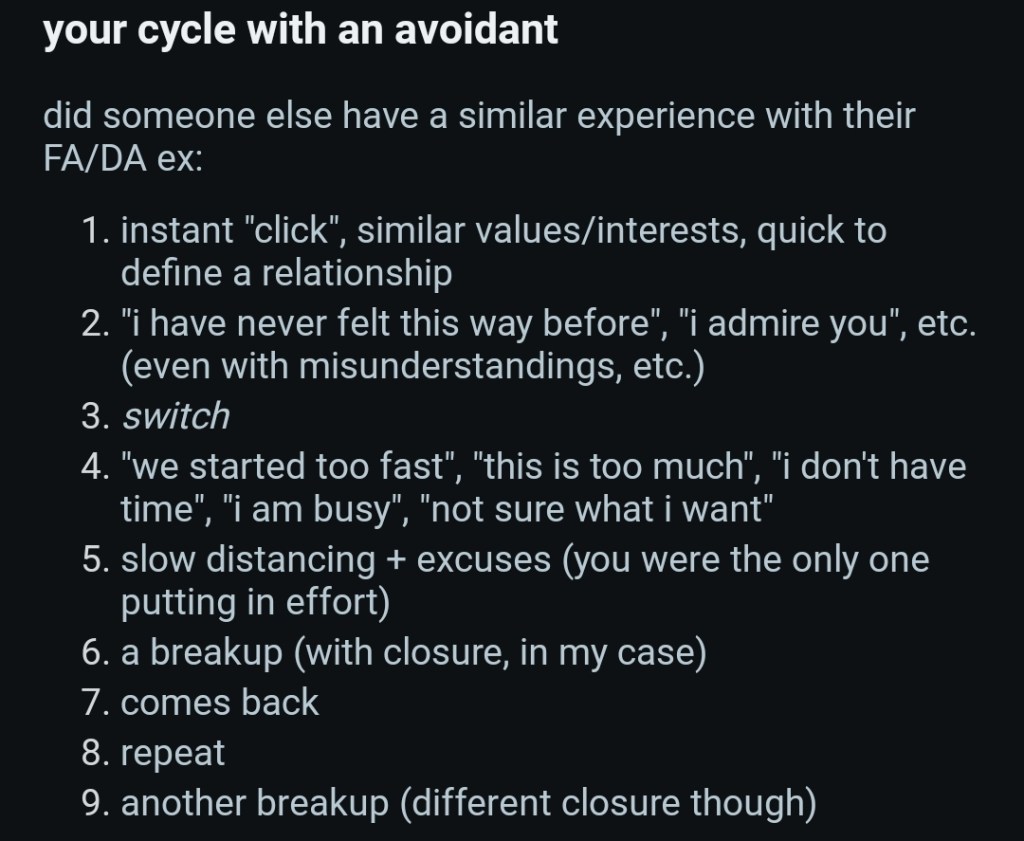 He said there’s nothing he is afraid to ask me. I wouldn’t lie to Joe. And I am firm in my belief that I do not owe a new love interest my life story. Nor does a new love interest need to hear about my pathetic, agonizing, very recent breakup with an avoidant man.